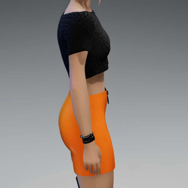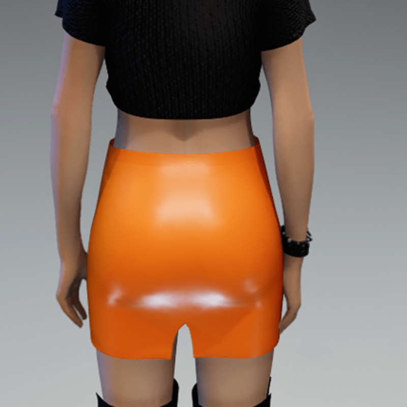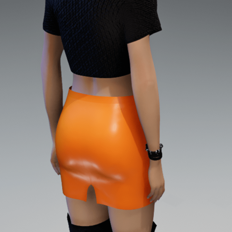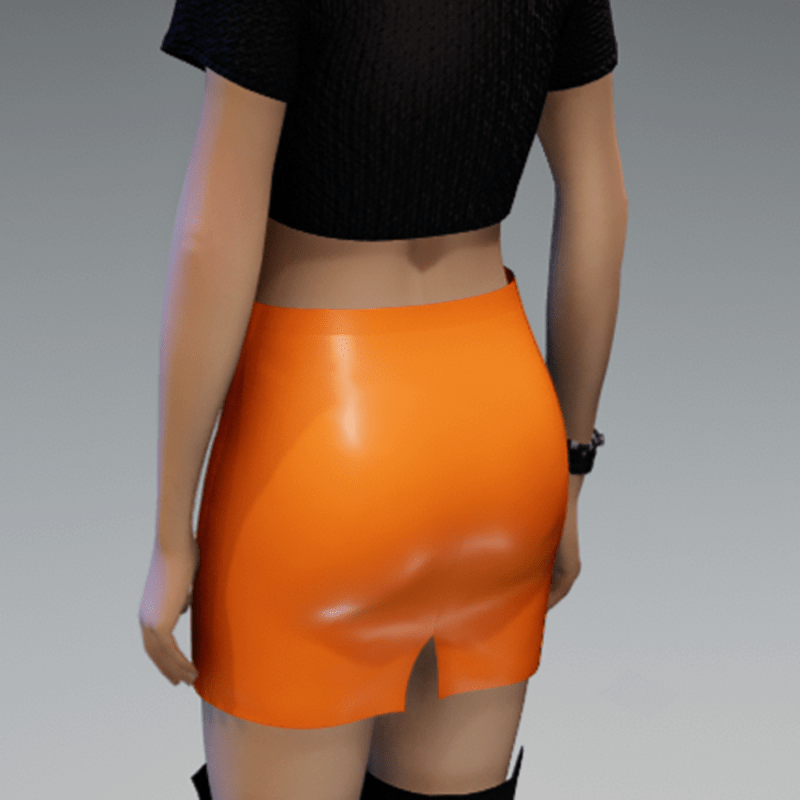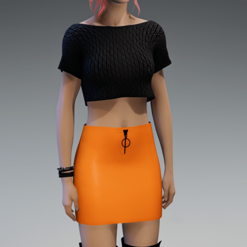 This mini skirt comes with a orange leather fabric and a black zipper on the front. If you're interested in the top showing in the images, check also my "Basic black short Girlie knitted" in my store. Enjoy!