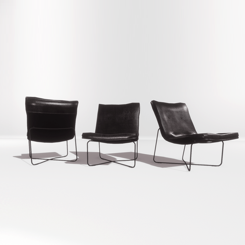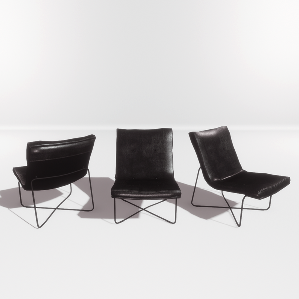 A black leather chair in modern design, suitable for the living room or the office. With collision. Take a closer look here: https://atlas.sansar.com/experiences/luise/studio-lamda