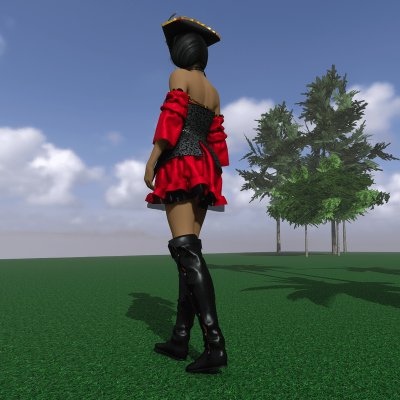 The vest is part of the pirate costume, as you can see in the photos. It is worn over the dress. It is black with grey-silver floral patterns, halter neck and ties in the front with a gold ribbon.