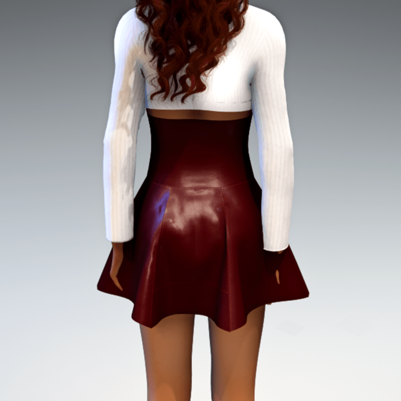 High Waisted Panel Mini Skirt - Red Leather