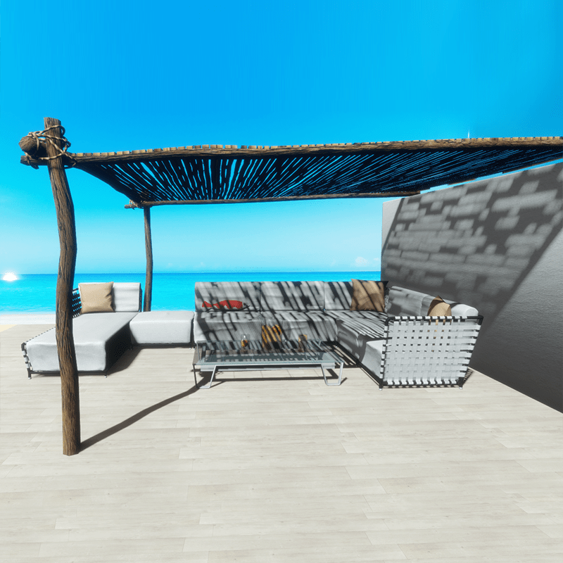 A glass jug and two glasses, with orange juice, ice cubes and fruit slices. Multi part object. No collision. Take a look here: https://atlas.sansar.com/experiences/luise/studio-lamda