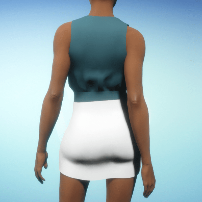 - Bloused Mini Dress - Teal and White