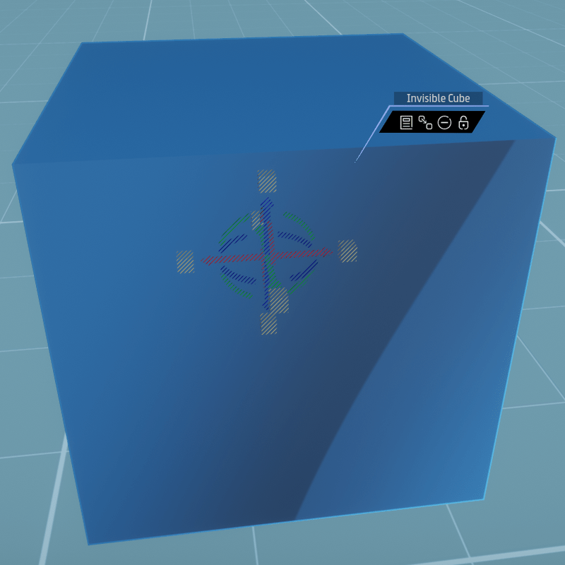 Uploaded July 2017 A 100% transparent cube collision mesh. For use as a collision barrier around a separate dynamic object that you do NOT wish for avatars to bump into. Tip: Enable "Physics Shapes" while editing your layout to see the cube. Example usage can be seen in "Ember's Buildbox" experience: a dynamic, rotating object floats within the Invisible Cube.
