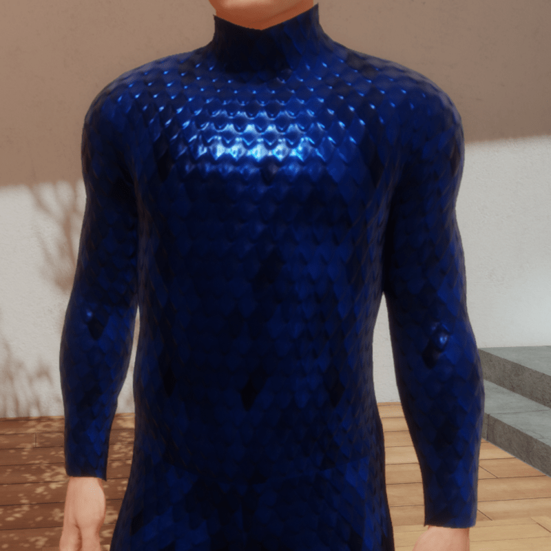 Strike fear into your enemies' hearts! Suit has animated PBR texture with metallic scales that go from dark blue to black color. Make sure to simulate to fit your body shape. Reviews are really appreciated ;)