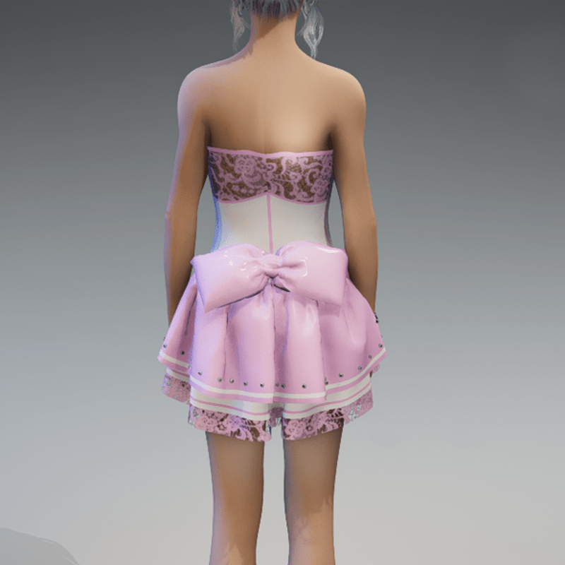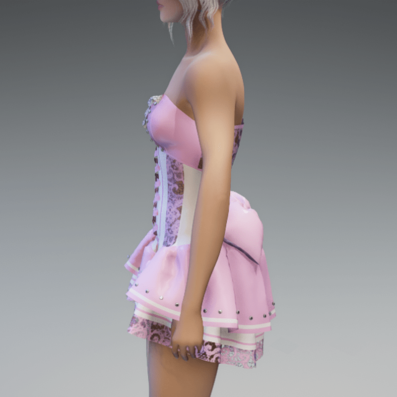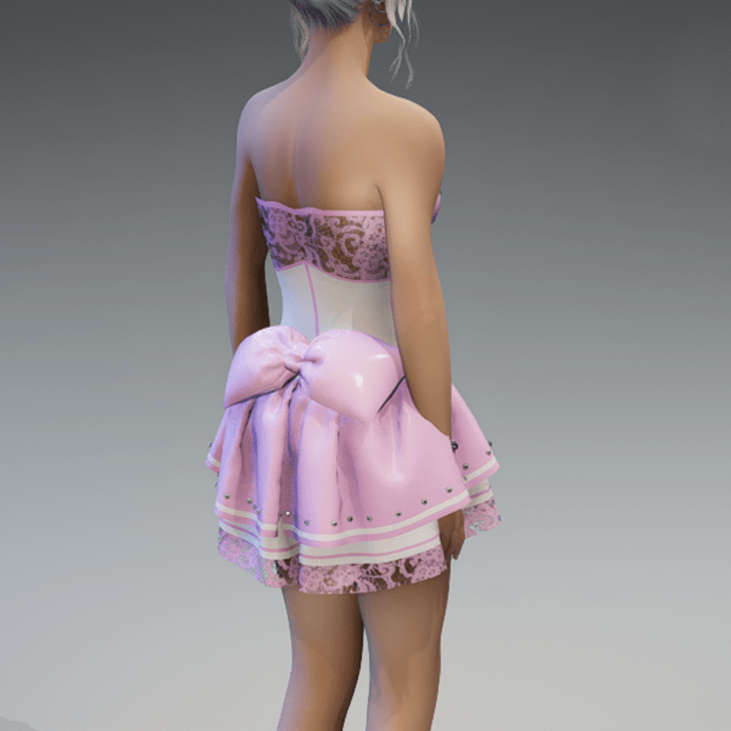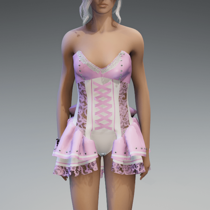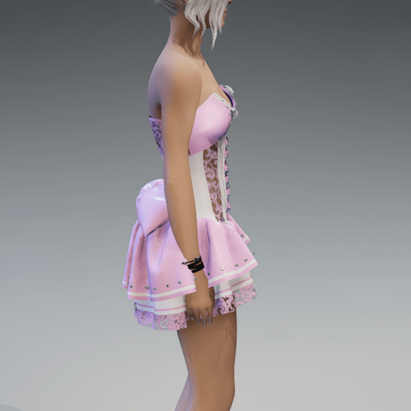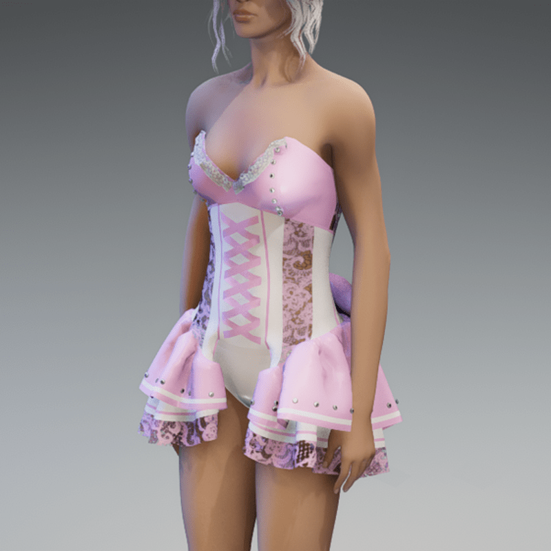my 'maidy' dress in pastel pink & white. please try my free 'siggy's store' version if you're not using the default avatar before maybe buying this one. if you're using an avatar with other proportions like the default one, it could be tricky to get the dress on. just pull the fabric of the panties carefully out of the avatar after adjusting it. I've tryed it several times with success. but please just try it with the free version. Hope you will like it! Enjoy!
