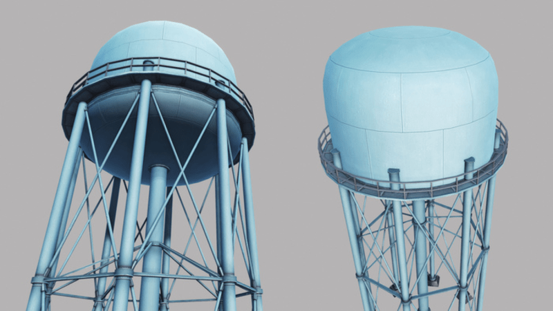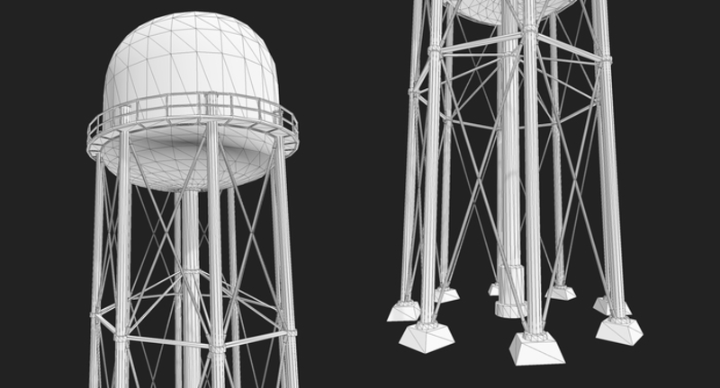 Metal Water Tower A Very Detailed Metal Water Tower in medium Quality, perfect for Urban or landscape environment. The water tower got alot of metal beams, and pillars, and a colour which really makes it a great landmark that stands out. Low Poly Triangles - 9076 Triagles - 5071 Vertices 4096x4096 PNG Textures - Specular & Normal Textures is created using Photoshop, and has a Diffuse, Normal & Specular to its base.