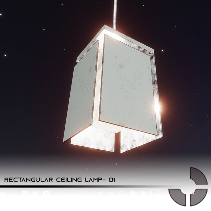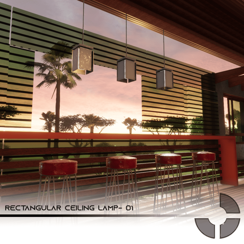 A Modern Rectangular Ceiling Lamp designed by Jack Verissimo for Metaverse. Low poly with Special PBR texture, this means that this asset is not heavy for your scenes. Point Light Ready and adjustable, as the materials, so you can change the color of the lamp and the metal.