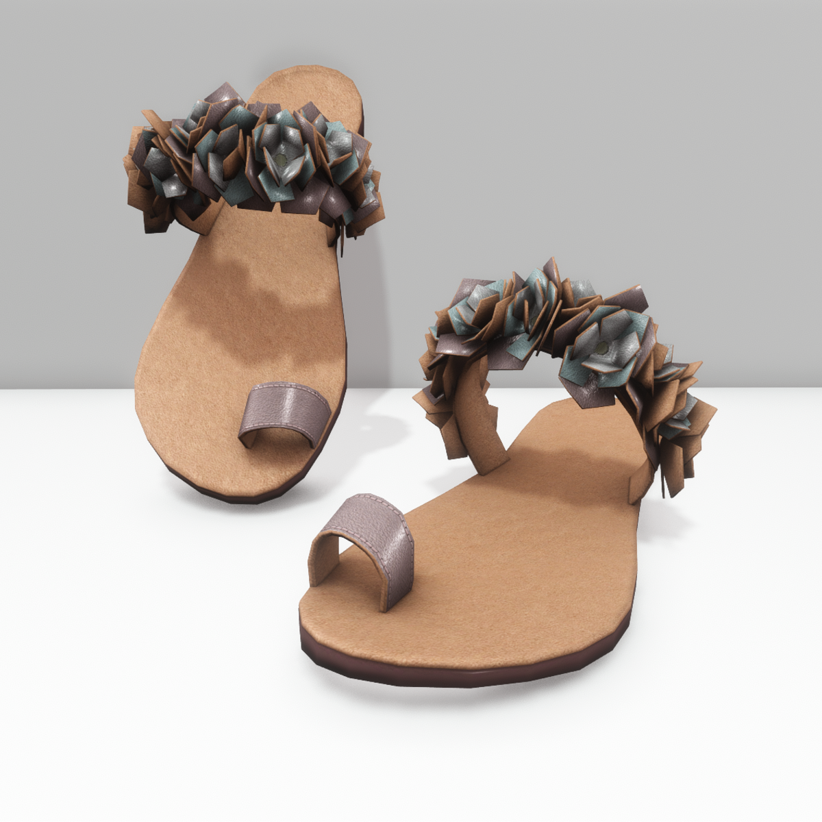 Vintage, bohemian, flat, summer sandals for the beach or a casual city look. Get the free demo before purchasing here: https://store.sansar.com/listings/250bbc97-7063-4d97-997b-e0837c556346/vintage-sandals-with-flowers---demo
