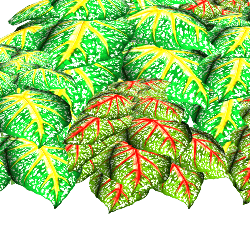 This is 6 little groups of caladiums mixed together to give a natural look as 2 different caladium plants grown together. Polygon count: 7656. There is no collision on this so you can walk through it. I have many colors. To see this flower in Atlas, please visit "LovedWarrior's Ground Plants." Please note that all my flowers are 100% detailed mesh. Each petal, pollen, stalk and leaf is made by hand and placed by hand. All the textures are also made by me. If you have requests, show me a picture of a flower and I will tell you if I can make it for you. Enjoy!