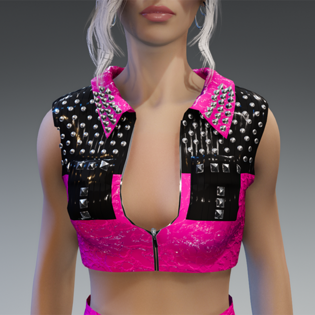 This short vest comes with a lot of rivets and a zipper on the front. you can also play around with the zipper, but it was meant to be half open. Enjoy! <3