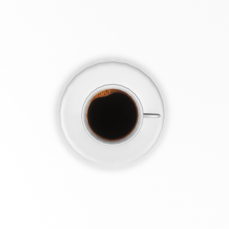 A white saucer and a cup filled with coffee. No collision. Take a closer look here: https://atlas.sansar.com/experiences/luise/studio-lamda
