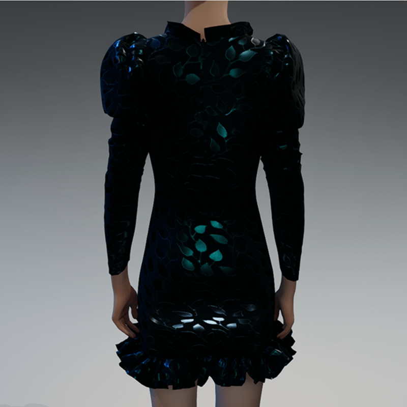 Emerald metallic leaves brocade ruched puff sleeve dress