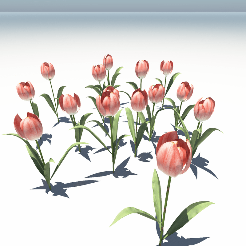 Field of red Tulips flowers, fully animated realistically : with Wind, with Life. This plant is fully animated with a perfectly smooth realistic wind effect. https://atlas.sansar.com/experiences/mitsukokytori/hayabusa-design-spring-1 Powered by Hayabusa Design Sansation technology, to generate and animate 3D Nature. Wind effect can be deactivated.