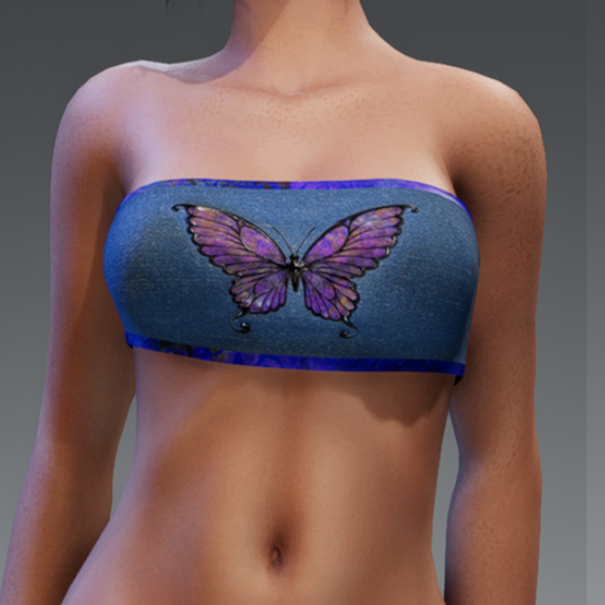 Butterfly Batik Denim Tube Top Batik Pattern Butterfly silhouette on a Denim Tube Top with Batik Straps. Check out my marketplace for more great colors of this Top, other great Batik printed apparel and check my world for exclusive in store colors. Visit my world here: https://atlas.sansar.com/experiences/lonaleelancaster/lona Made in Marvelous Designer and can be adjusted to fit most avatars. Created on a custom avatar, slightly curvier than AV2.0, to allow for a better custom fit. Check out the DEMO Version here: https://store.sansar.com/listings/a7d947cb-8acd-4371-9f4a-5c0a85328e9f/demo---batik-butterfly-tube-top---demo--pattern-17 To learn more about transforming and adjusting Marvelous Designer clothing visit this link: https://help.sansar.com/hc/en-us/articles/115005693363-Fitting-Marvelous-Designer-clothing-to-your-avatar#some-tips