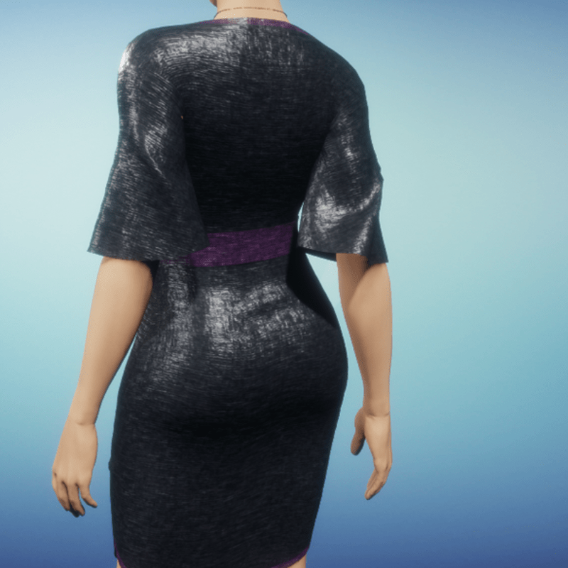 Silk Short Evening Dress with Flutter Sleeves. This was made with Marvelous Designer.