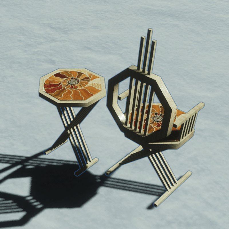 art deco chair and table. No script. Full perm.