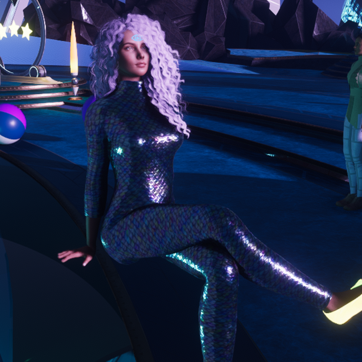 Koi scale jumpsuit wit multicolor. Tested on Alina avatar by Cora. Created in Marvelous Designer so you can adjust to your needs.