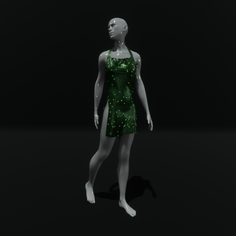 A small, sexy, glossy halter dress in green color with sparkling effect. It has an open back and high openings on both sides. Get the demo item before purchasing to check style and fitting, here:https://store.sansar.com/listings/9a75c063-3ecd-4402-a5d8-daf72c599ed8/small-sparkling-club-dress---demo