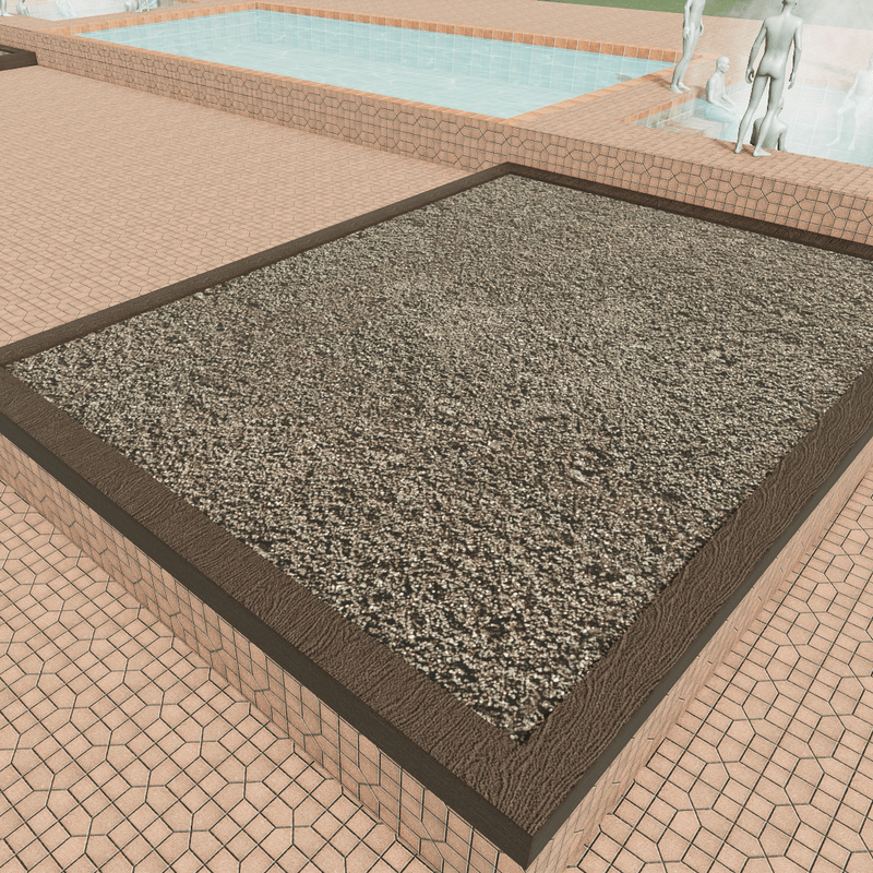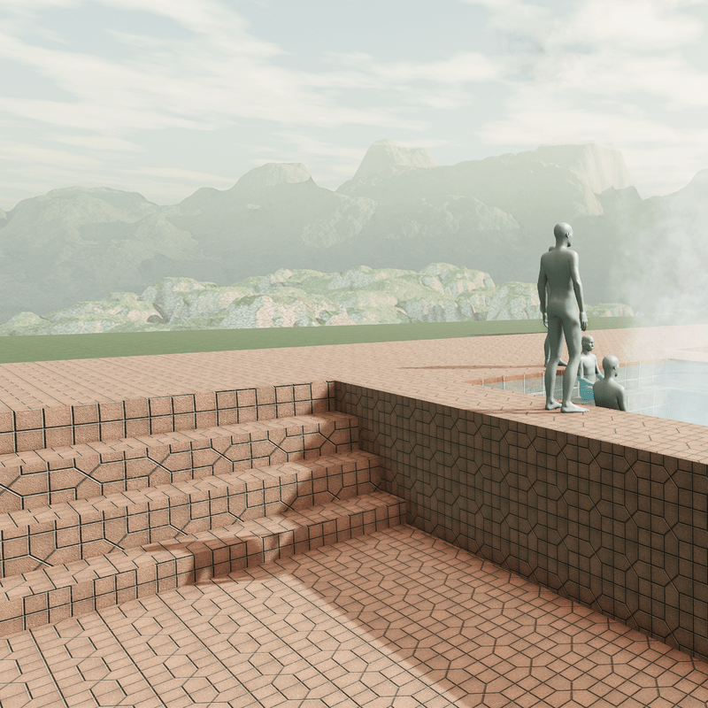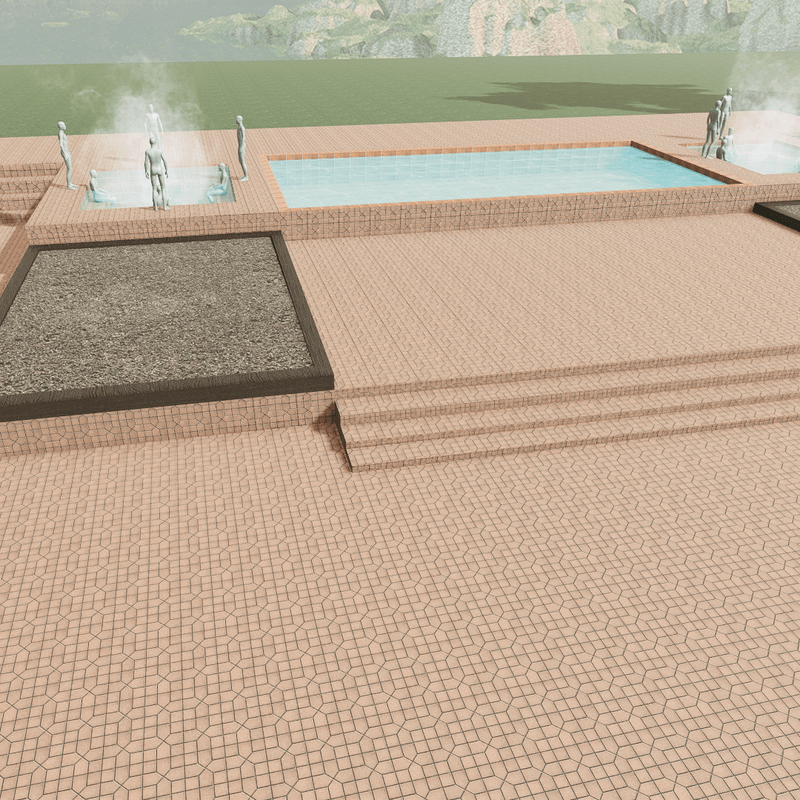 Patio big enough for a party. Has two hot tubs with animated steam and 4 sit points each! Has a pool and two planters for flowers and grass. Has tons of space for dancing, campfires, a DJ booth and more. Very big so make sure you have space. Comes with all maps. Has a lot of detail.