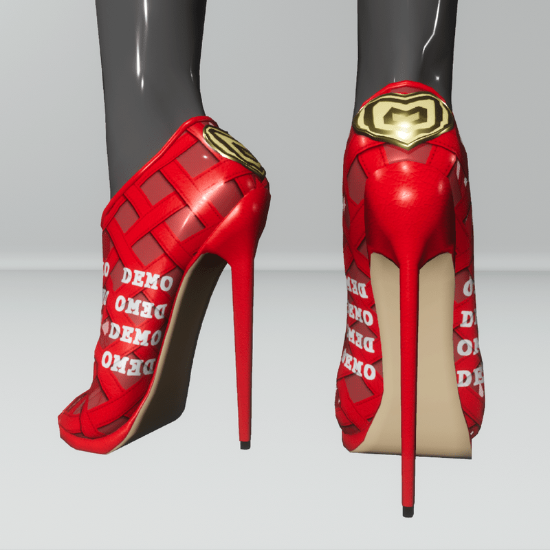 High heels stiletto shoes, with open toe, leather straps and translucent fabric in many colors for the h2ai high avatar. There is a golden decorative heart at the heel, with a visual effect. Free demo item.