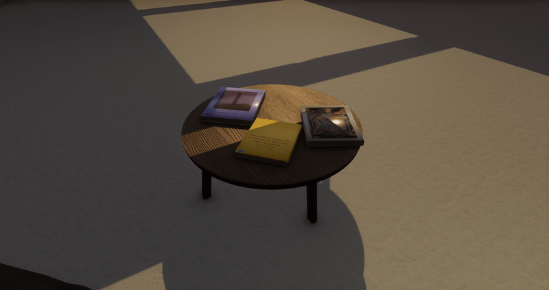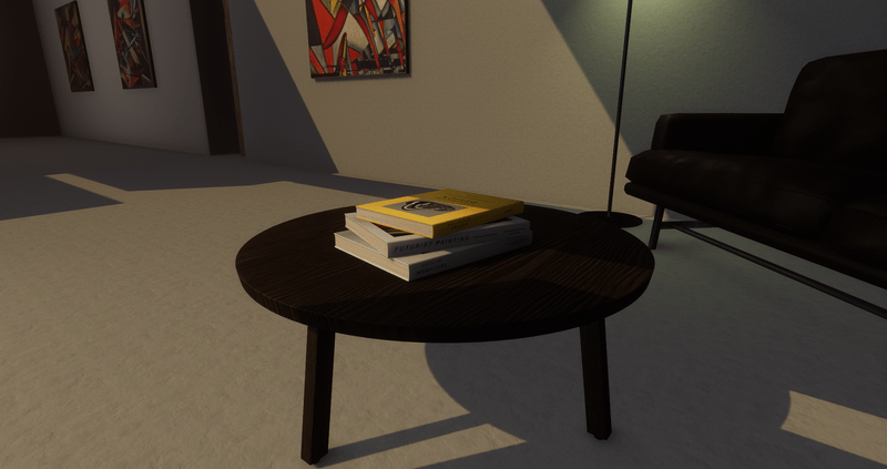 Coffee table books (books only, no table) *Not for reading -- strictly decorative See here: https://atlas.sansar.com/experiences/captcha-2893/private-gallery