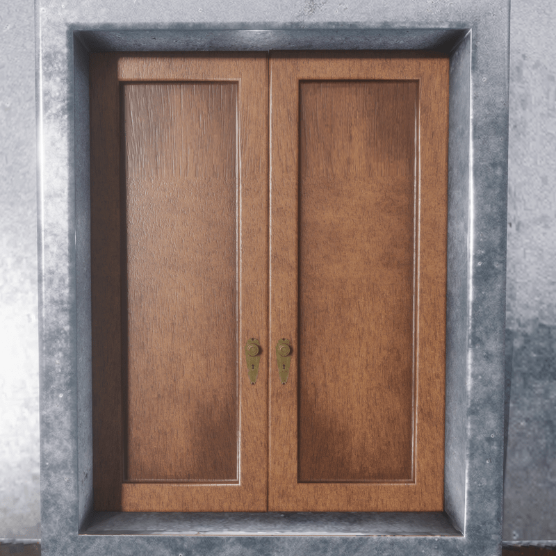 Wooden door with Deco door knob. Hinged on the right. Buy the left hinged door to make a double door system. Not scripted.