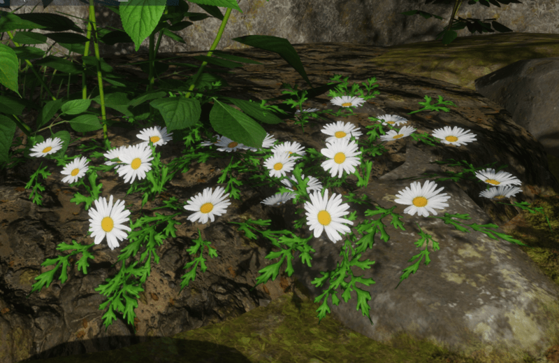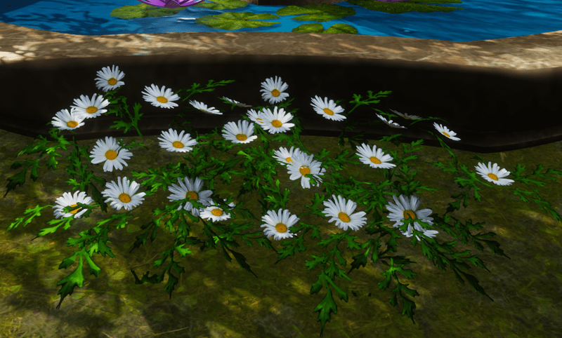 White Daisies double. The bigger version of White Daisies. Daisies and leaves only with no stems. This is a very simplified model. It looks good on a dark background, on soil and rocks. Arrange on an angle for better effect. See images. Poly Count 2164. See in Sansar experience - https://atlas.sansar.com/experiences/reidparkin/reid-s-plants