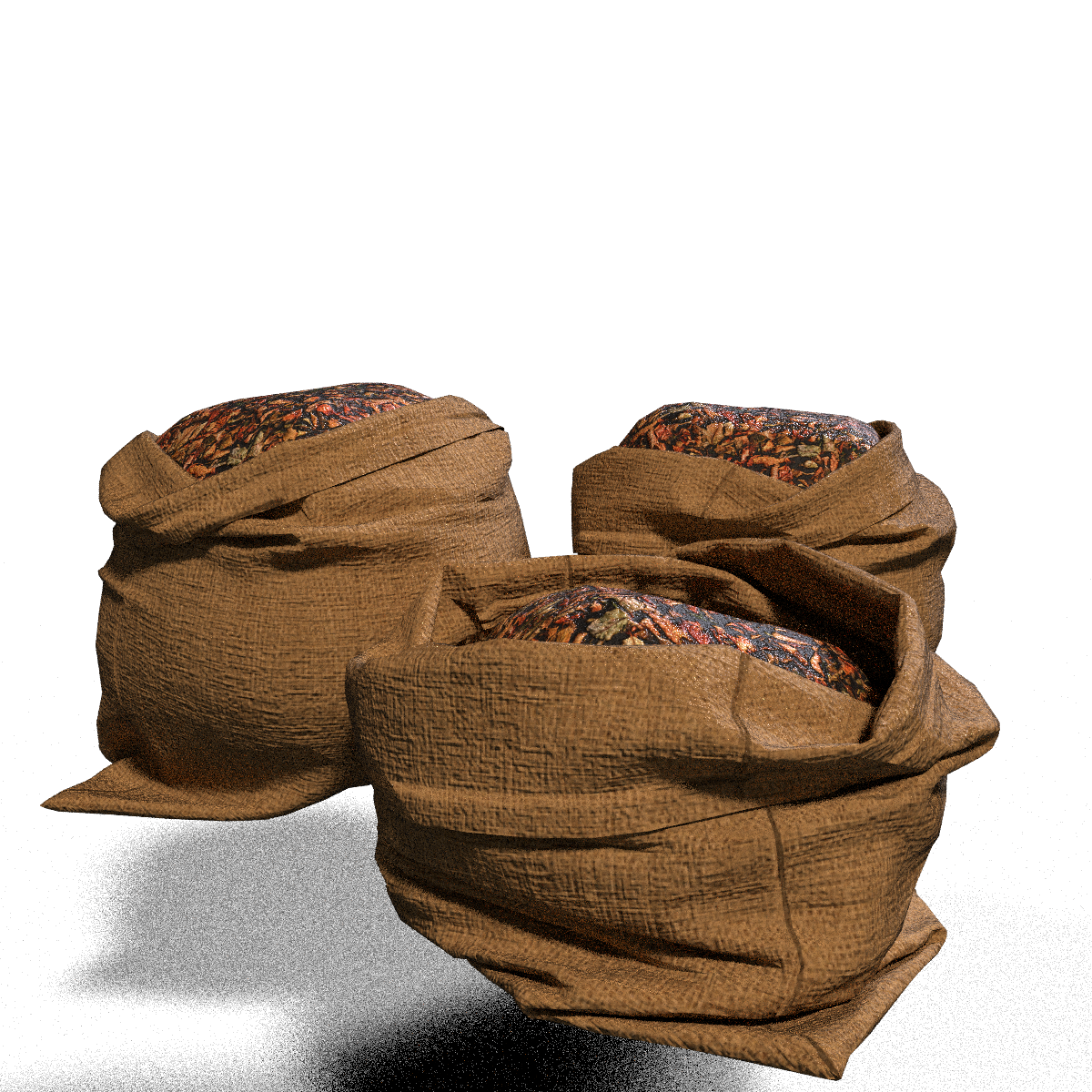 Set of 3 sacks of leaves. This is 1 object. Collision: Yes See at: https://atlas.sansar.com/experiences/bluebell/bluebell-home-garden-wip