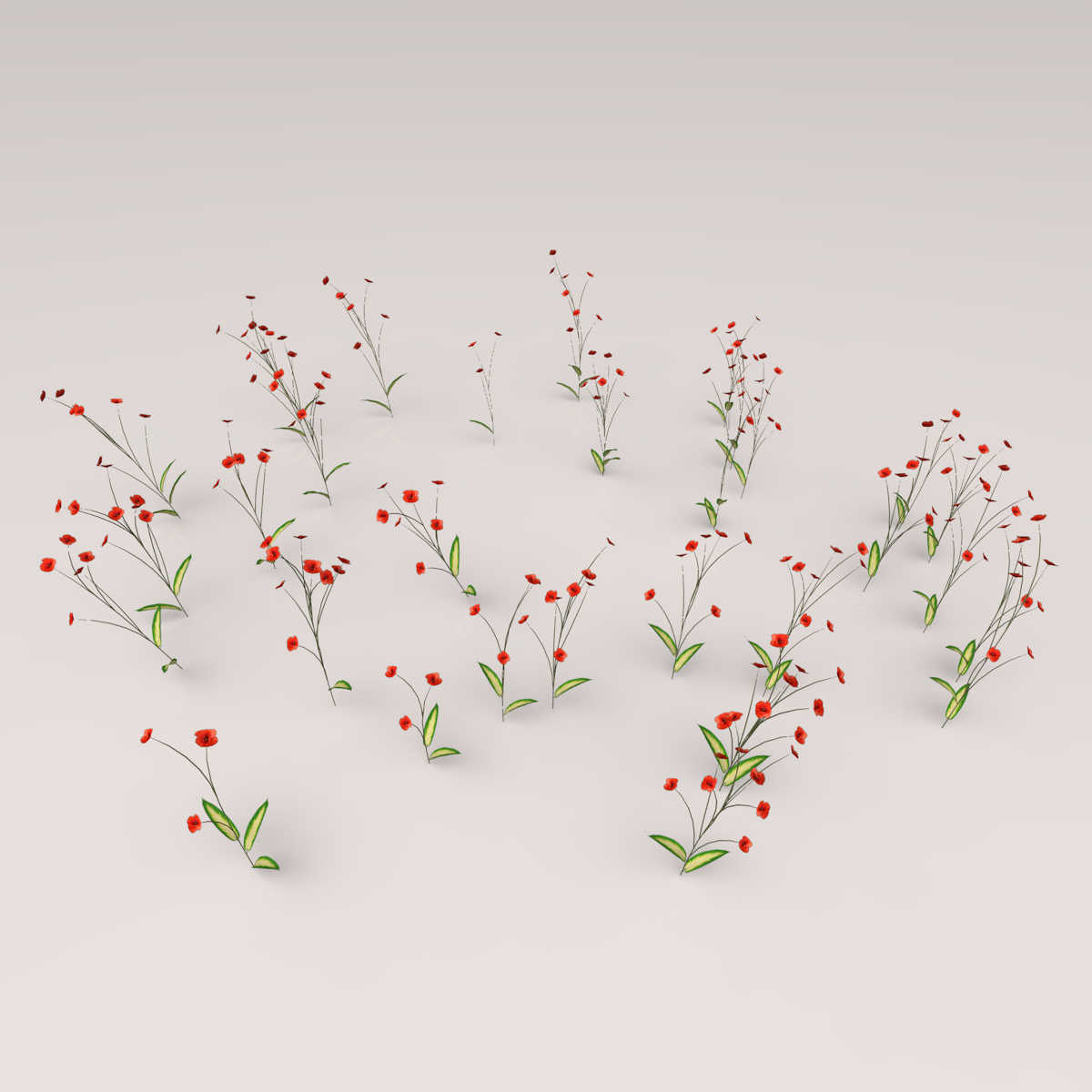 Field of red poppy flowers, fully animated realistically : with Wind, with Life. This plant is fully animated with a perfectly smooth realistic wind effect. https://atlas.sansar.com/experiences/mitsukokytori/hayabusa-design-spring-1 Powered by Hayabusa Design Sansation technology, to generate and animate 3D Nature. Wind effect can be deactivated.