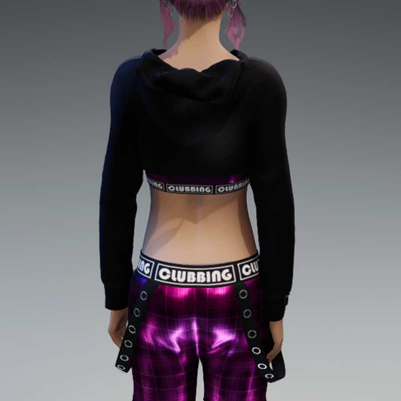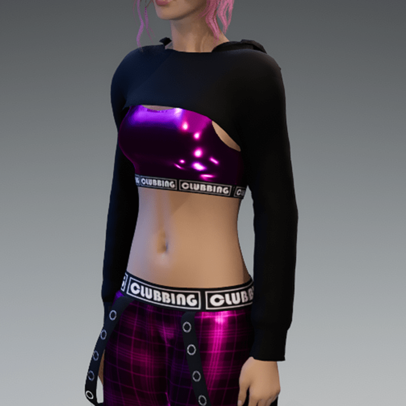 Includes the hoodie and the top as a full top. Please note, that the hood is just for optical "decoration" and may not fit the head of your avatar if you pull it up. For the full outfit showing in the image, check out my "Checkered Metallic Pink Clubbing Sweatpants with Straps". You can also use my free 'siggys store' version before buying this one if you want to know how this hoodie will look like on your avatar. Enjoy!