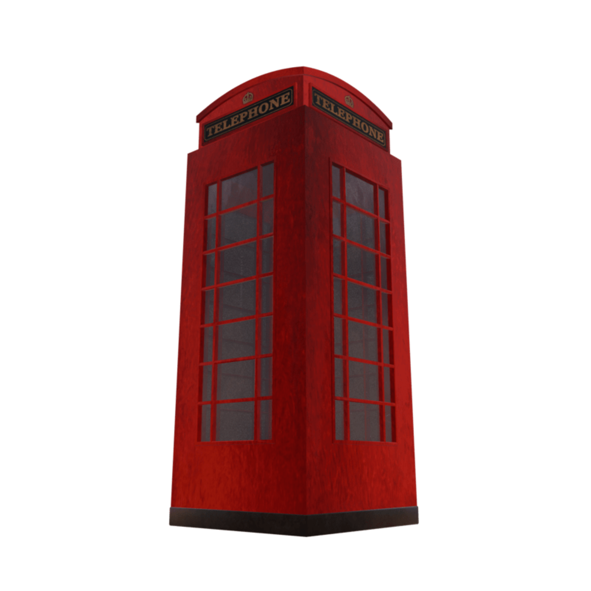 Weathered british red phone booth; non enterable, aesthetic decorative purpose only; low-poly..includes built-in light, adjust if needed.