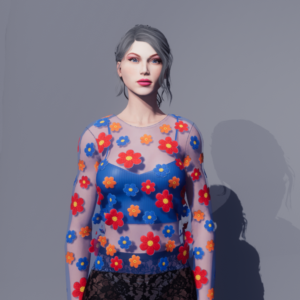 L.F. SOLENA TEE SHIRT this is a Sheer t-shirt covered with embroidered flowers (sunflower). worn by my avatar Morgane (by M.P.P.) This item is made with Marvelous Designer, you can ajust this item for a perfect fit and can bee worn on a top . Other colors and You can see this garment in my mainstore : https://atlas.sansar.com/experiences/marine-1972/lipstick-fashion-par-marine