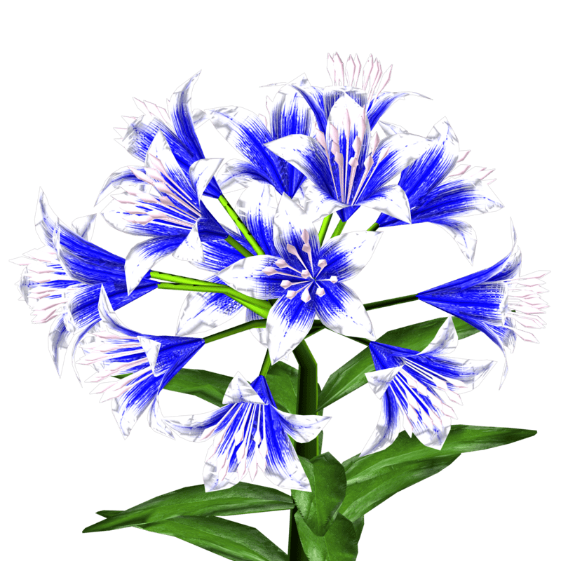 1 Trumpet Lily Plant with about 14 blooming lily flowers and several leaves for your lovely gardens. Polygon count: 15480. There is no collision on this mesh so you can walk through it. I have many colors. To see this flower in Atlas, please visit "LovedWarrior's Ground Plants: https://atlas.sansar.com/experiences/lovedwarrior/lovedwarrior-s-ground-plants" Please note that all my flowers are 100% detailed mesh. Each petal, pollen, stalk and leaf is made by hand and placed by hand. All the textures are also made by me. If you have any flower or plant requests, show me a picture of the flower and I will let you know if I can make it for you. Enjoy!