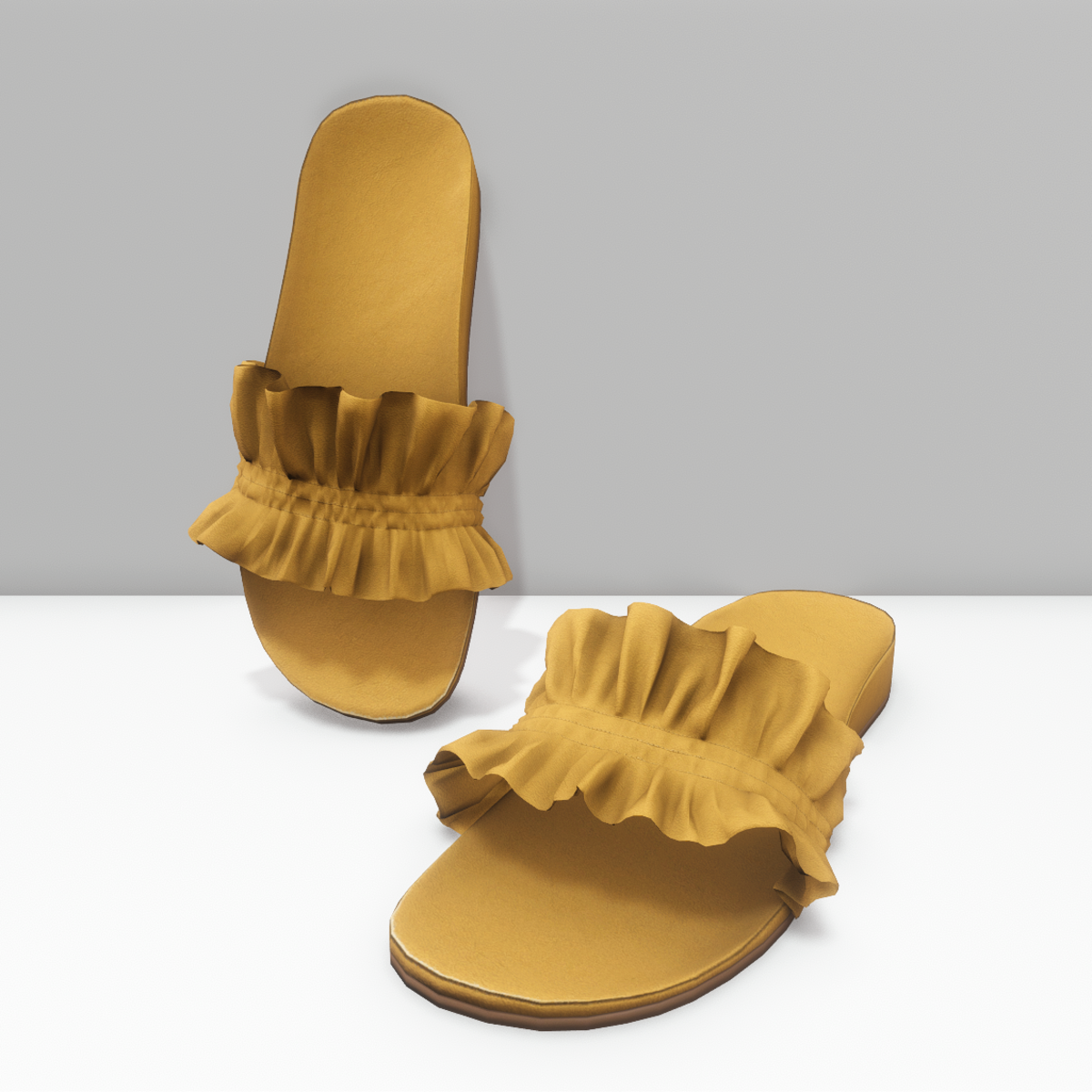 Beautiful casual summer flat slider sandals with ruffled upper in yellow colour. Get the free demo before purchasing here: https://store.sansar.com/listings/ff1e5976-5f59-405f-9f16-901f49e06d5b/ruffle-slider-shoes---demo