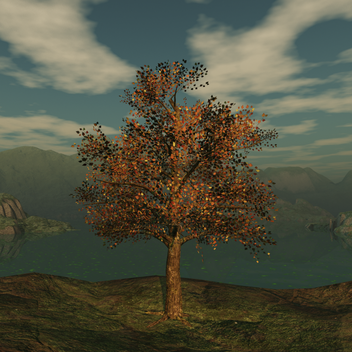 A mossy oak in fall colors. 15 meters tall, re-size to your needs. Collision: yes. Store Link: https://atlas.sansar.com/experiences/bluebell/bluebell-home-garden-wip