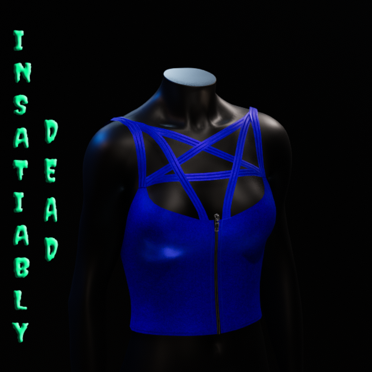 VELVET ZIP TOP [BLUE]. CREATED IN MARVELOUS DESIGNER WITH AVATAR 2.0. ADJUSTMENT MAY BE REQUIRED! FITTING INSTRUCTIONS CAN BE FOUND BY GOING TO THE LINK BELOW. https://help.sansar.com/hc/en-us/articles/115005693363-Fitting-Marvelous-Designer-clothing-to-your-avatar PLEASE RATE AFTER BUYING! IF ANY ISSUES OCCUR PLEASE CONTACT TEAGAN BROKKEN FOR ASSISTANCE. THANK YOU! <3 <3 GET INSATIABLY DEAD <3