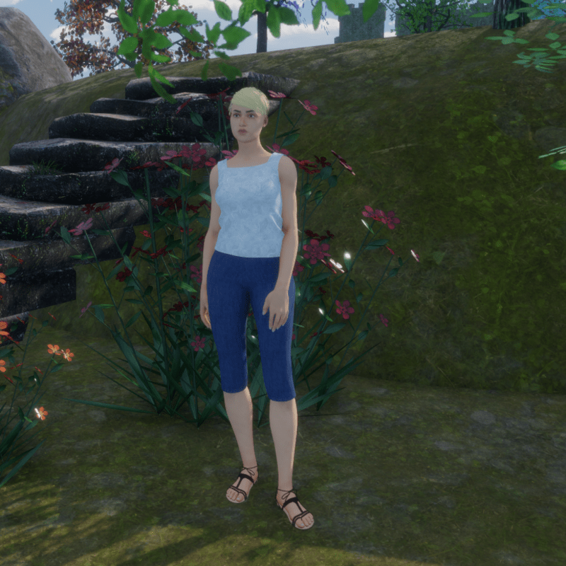 Blue denim capris.