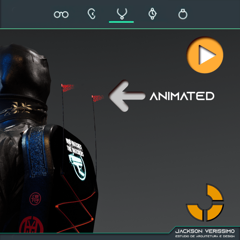 BackPack Series Minimal is a new design of backpacks by Jack Verissimo. Minimal Watchers is a special edition of this backpacks because is the unique of this series that have a animated flag. Unisex Backpack. Just a little adjustments to fit . The design is based on avatar 2.0 of Sansar. Metalic Texture and Emissive Sticker.