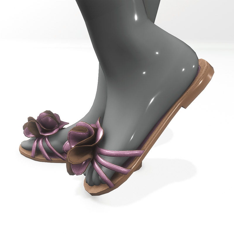 Flat summer shoes for avatar alina. They are made of brown and pink leather and are decorated with a large flower. Sandals suitable for the city and the beach, match jeans, light dresses and shorts. Get the free demo before purchasing here: https://store.sansar.com/listings/3369fe4f-642a-4551-9501-699016c21807/flower-sandals-for-alina---demo