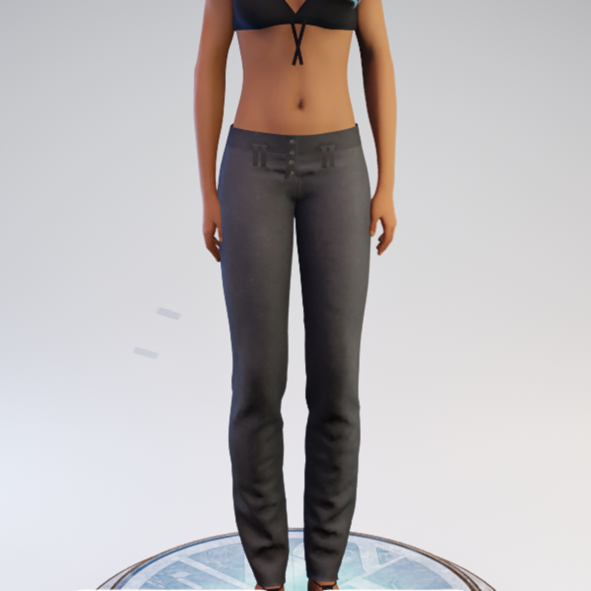 Buttoned Hip-hugger Pants - Brushed Denim - Grey