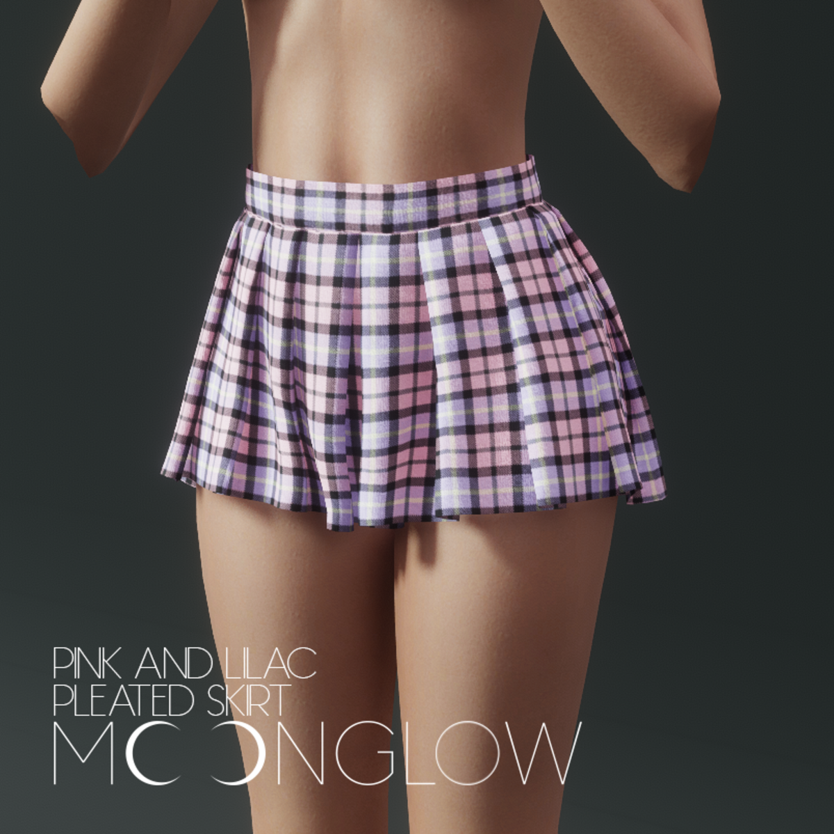 A pink and lilac plaid skirt. Moonglow Store: https://store.sansar.com/store/Moonglow-0352