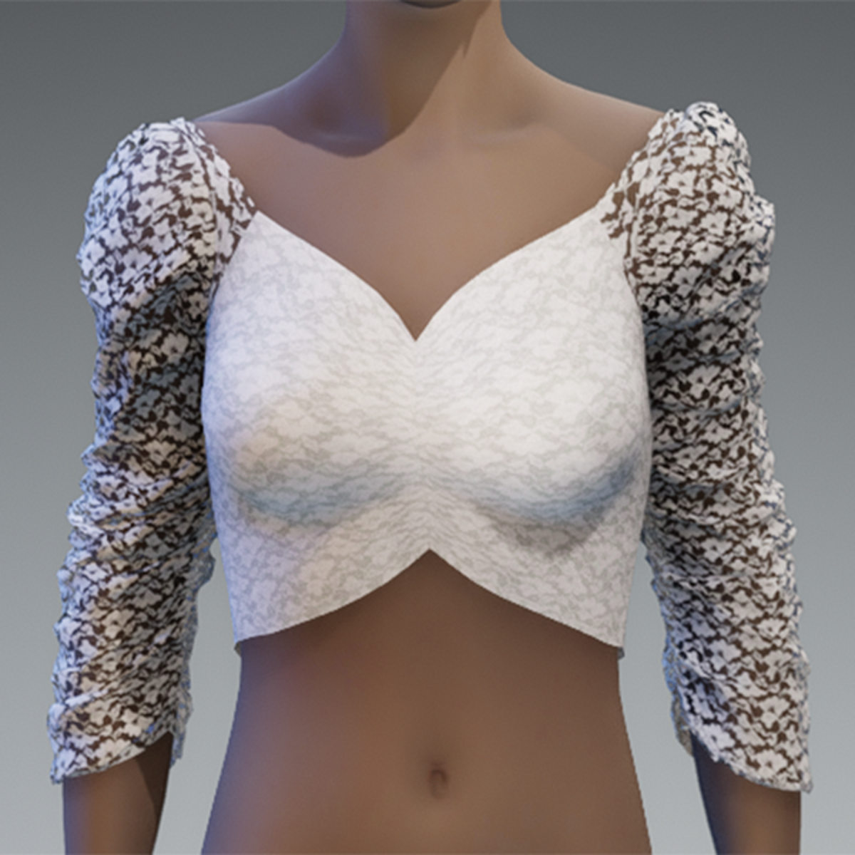 White lace ruched puff sleeve top