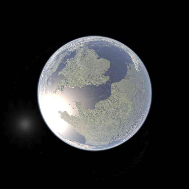 Low Earth orbit above the English Channel (Europe). Source images: Blue Marble collection at NASA Visible Earth, NASA Goddard Space Flight Center and The Milky Way Panorama by ESO/S Brunier.