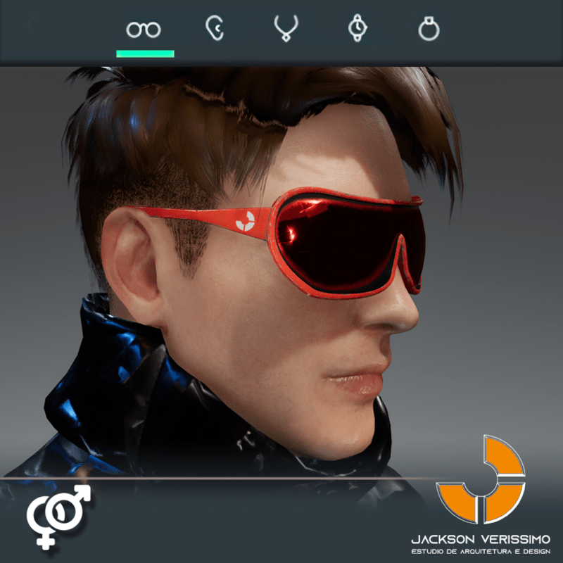 Ai Glasses 1- Red is a model of glasses designed with Ai. PBR Textures 2 k Match with all avatars in Sansar. Maybe a adjustment for models diferent of Male Default 2.0 avatar of Sansar.