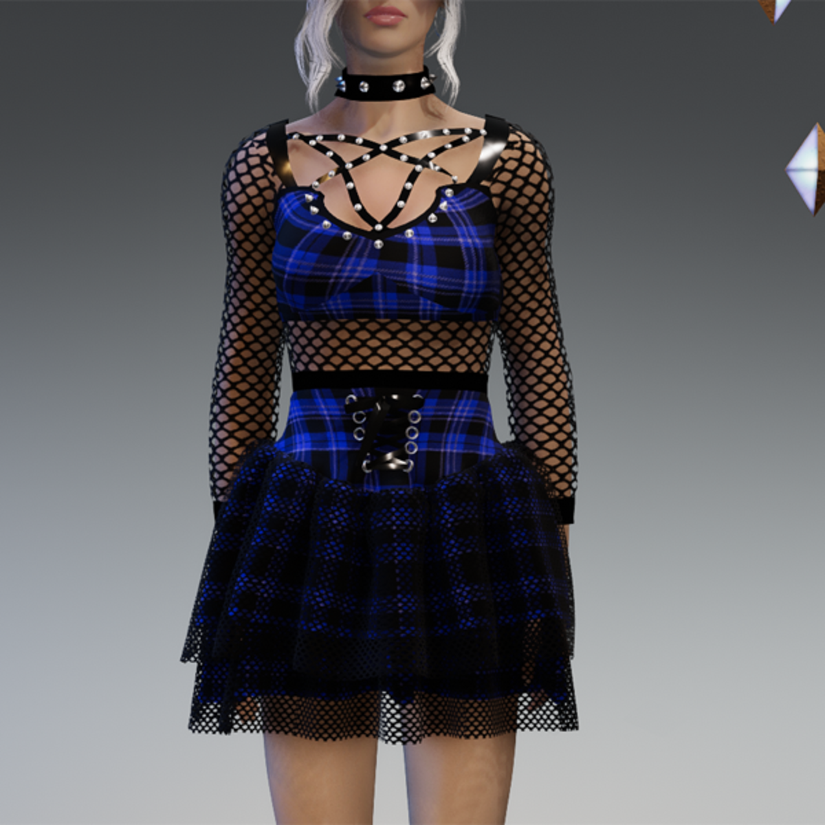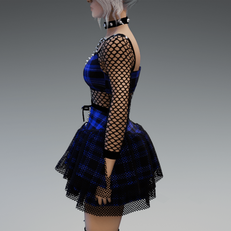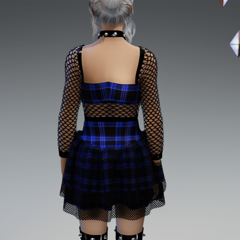 Gothic Dress "Princess Bat" in Checkered Blue