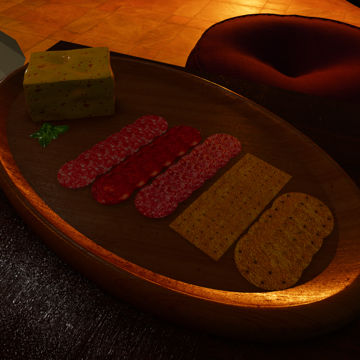 Having a party? Need some appetizers? No worries. This platter comes with assorted meats, crackers and cheese. It has normal maps and extraordinary detail. This platter will be a absolute favourite amongst friends.