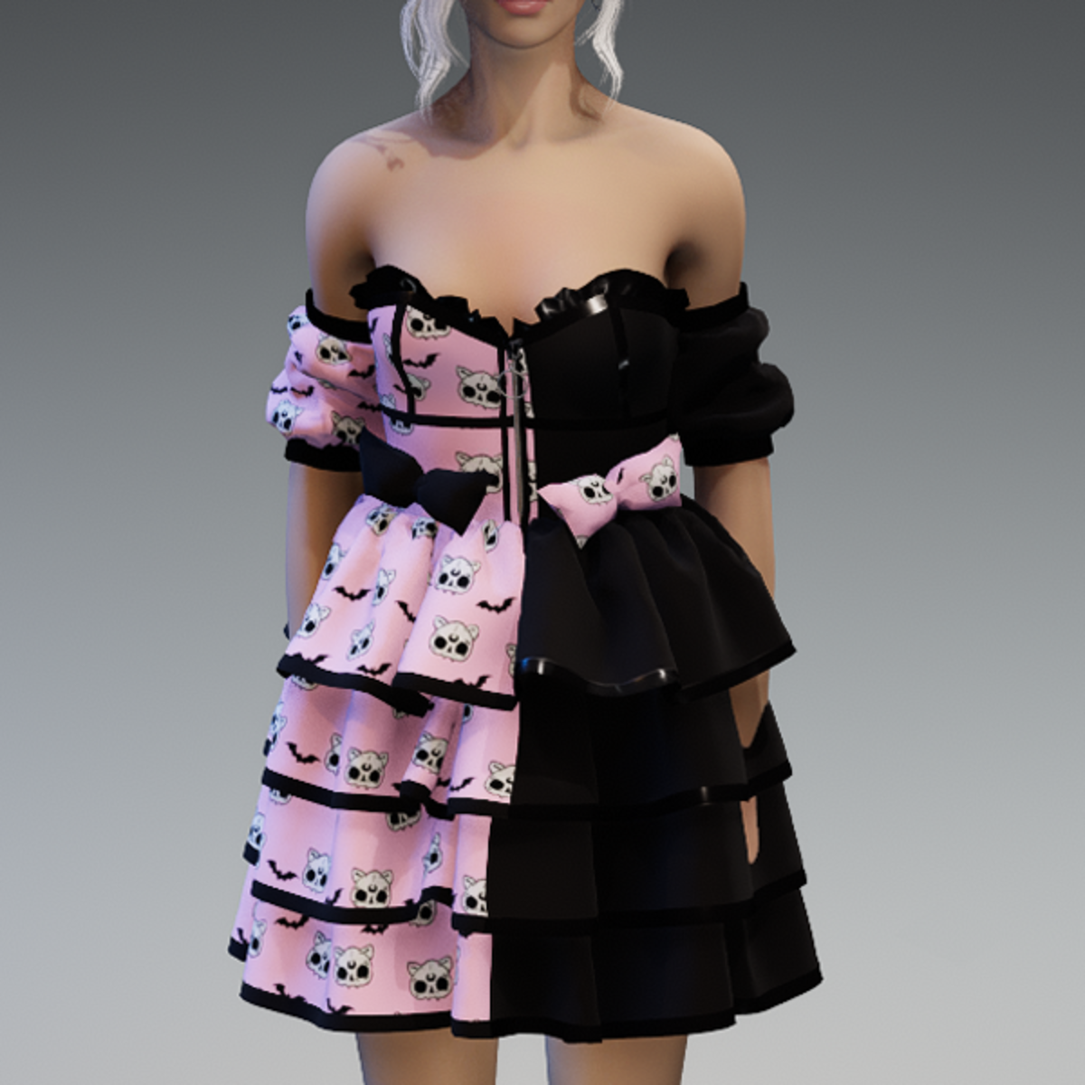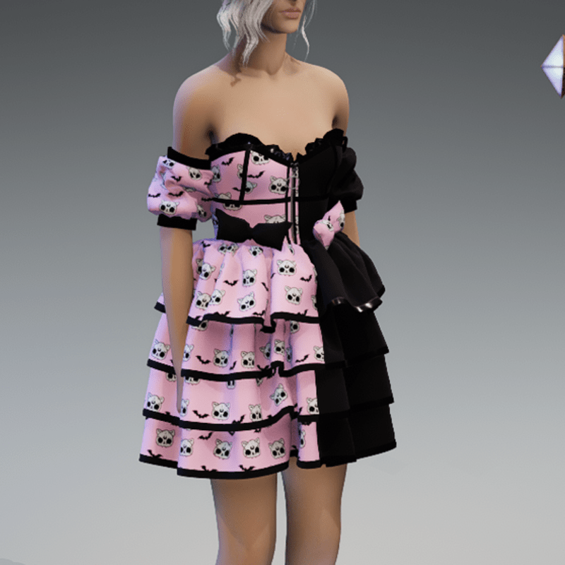 Lolita Dress V1 'Deadcats & Bats' with Bows in Pink