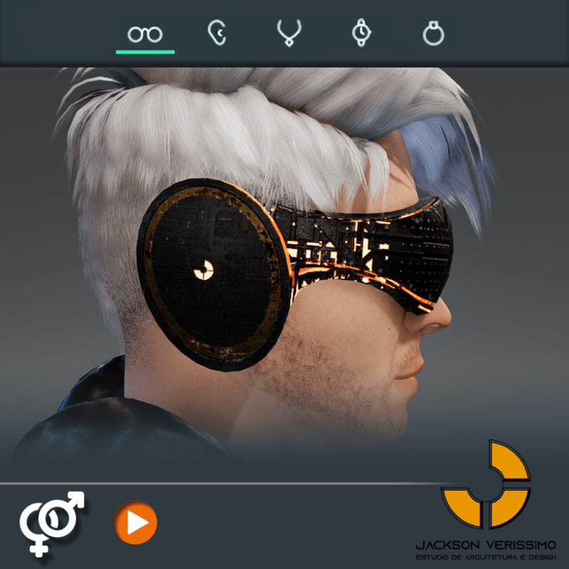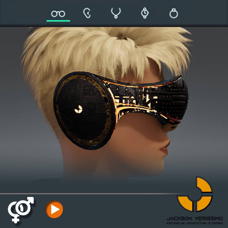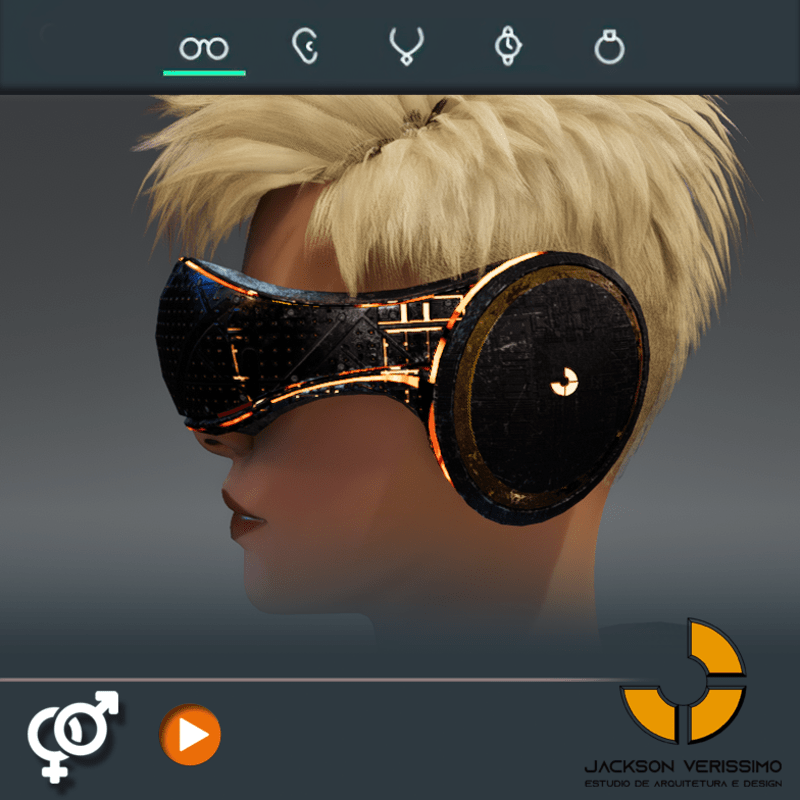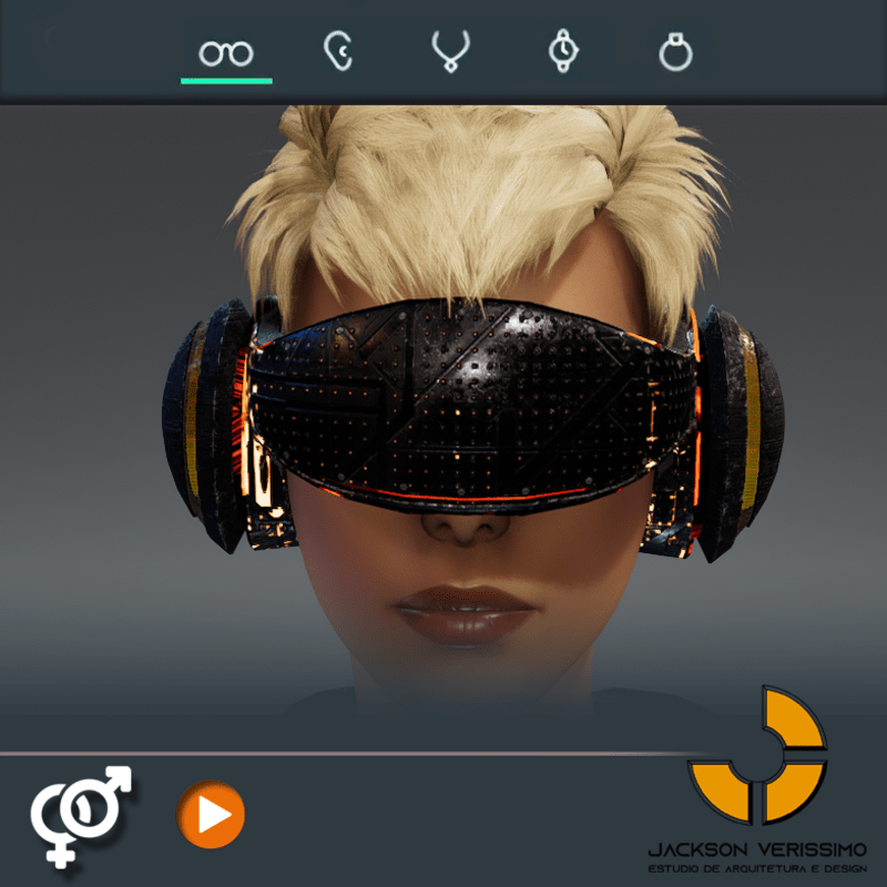 Visionary Design for a VR Headset exclusive for Sansar Metaverse. This Vr Glasses don't mess the Hair of your Avatar. Minimal and Elegant Design. Vr Glasses with HeadPhone. High Resolution PBR Texture and Animated Lights. See the animation: https://gyazo.com/597493d772bfabba753c9958fbbe7e24 Unisex. Match with all humanoids avatars. No need adjustments for Default 2.0 Avatar of Sansar.
