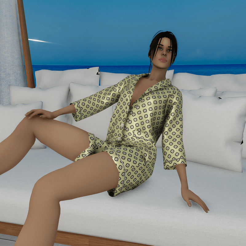 A classic design pajama short with a modern cut made with printed silk fabric in pastel yellow colour.