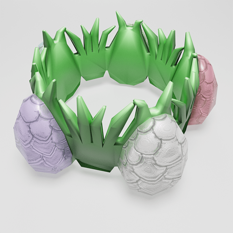 Name: Dragon Egg Hunter ♀ Type: Accessory - Ring Finger Color: Chalk RGB/ Grassy Green Carbon Quantity: 1 Item Number: 8 Geometric Detail 830 Vertices 1,630 Edges 800 Faces 1,660 Triangles